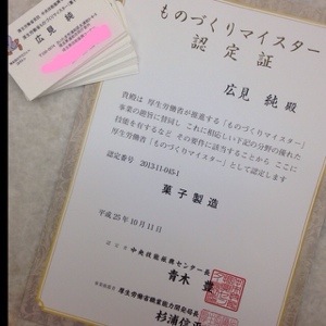 そんな中、厚生労働省から洋菓子マイスターの認定書と名刺が届きました。名刺持って何すりゃいいんだって感じですが、貰えるものはいただいときましょう^o^