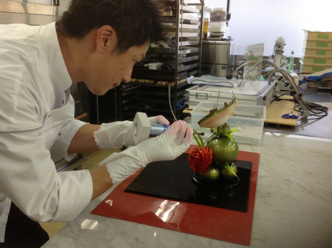 卒業生(プロのパティシエ)のためのアメ細工のデモンストレーションでした。