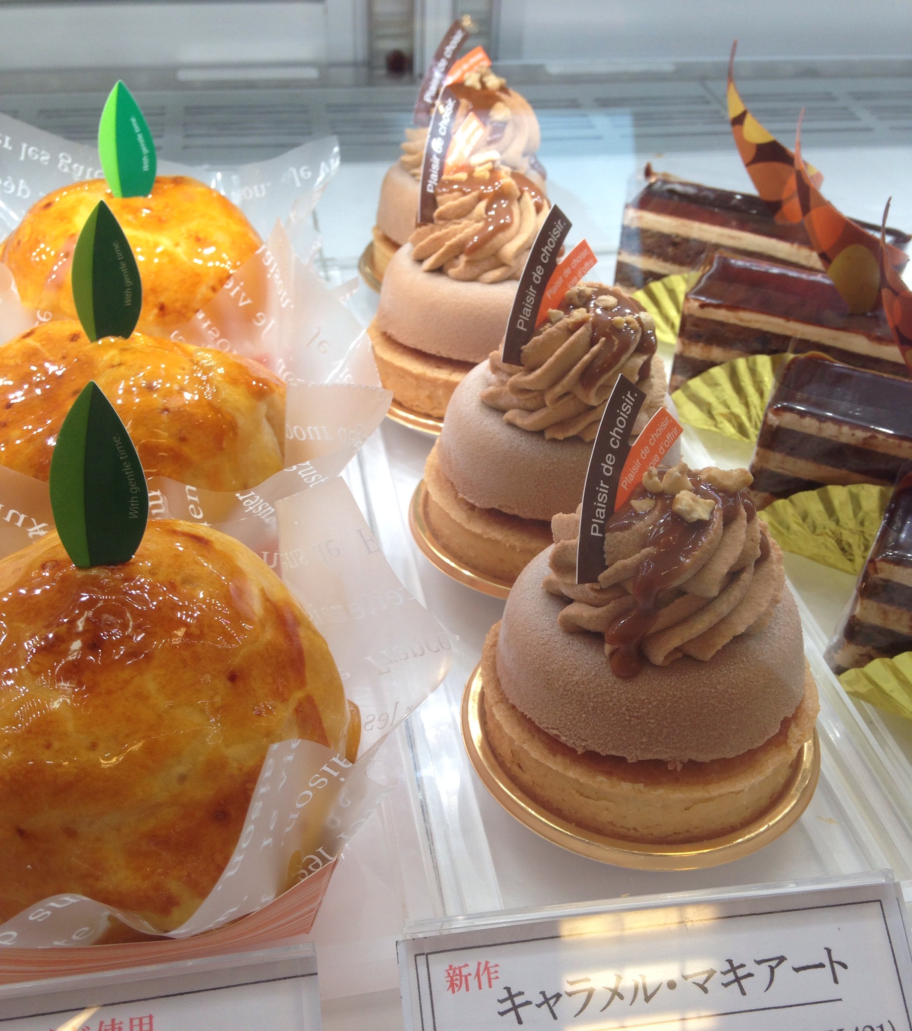 朝焼きしたタルトダマンド、ミルクチョコのムース、中にクレームキャラメルを忍ばせ、ホワイトチョコベースのカフェクリームを絞り、リキッド状のチョコを吹きかけ、最後にクレームキャラメルを上から垂らし、ローストアーモンドを散らしました。