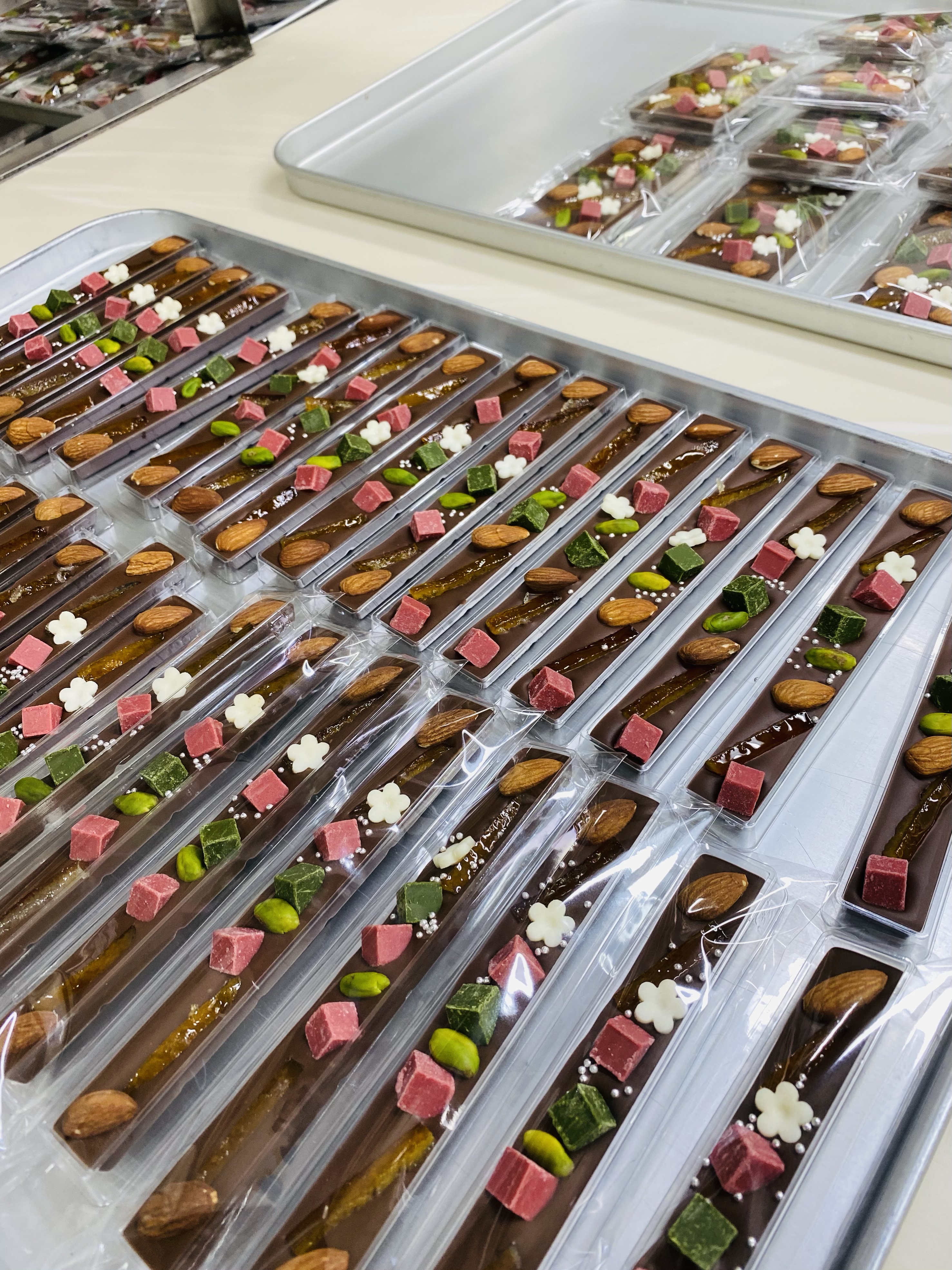 今日はタブレットショコラ(板チョコにドライフルーツやナッツを散りばめた)を作りました。