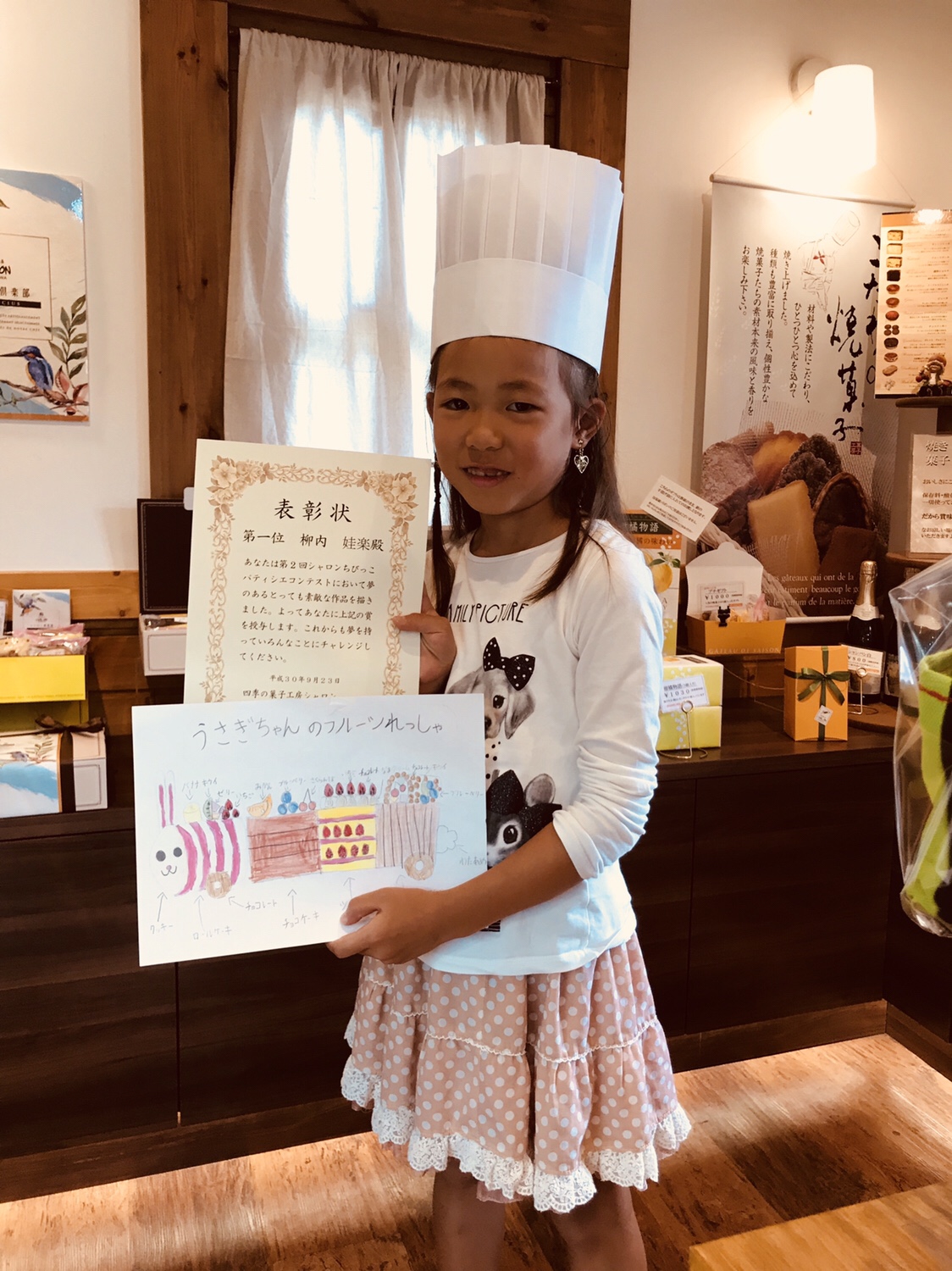 昨日と今日ちびっこパティシエコンテスト表彰式をしました。緊張感と恥ずかしさと嬉しさで予想通りの最高な笑顔を見せてくれました。