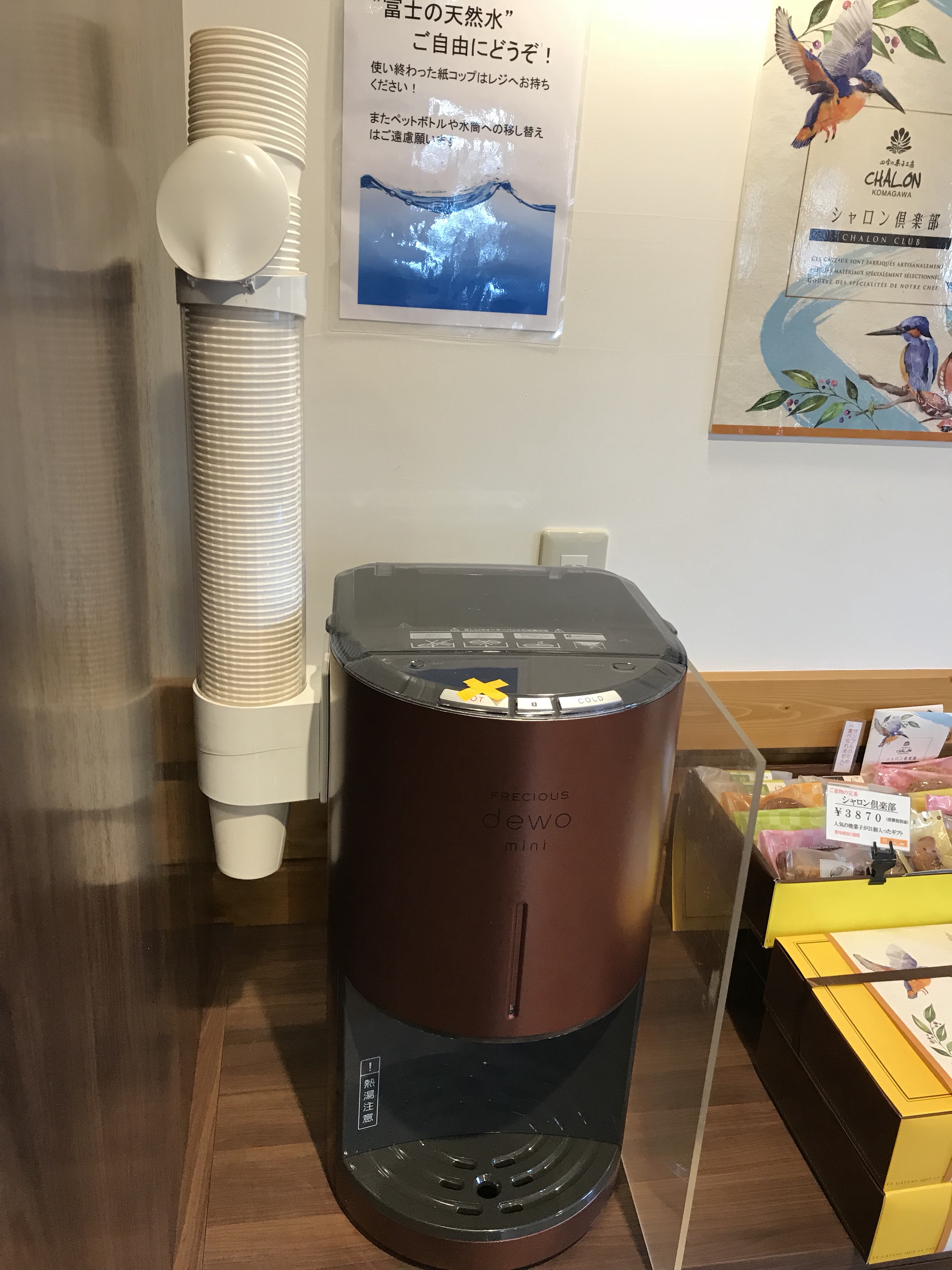 ケーキを包装中の待ち時間やテラスご利用のお客様に天然水をご用意しました。ご自由にお飲み下さい!