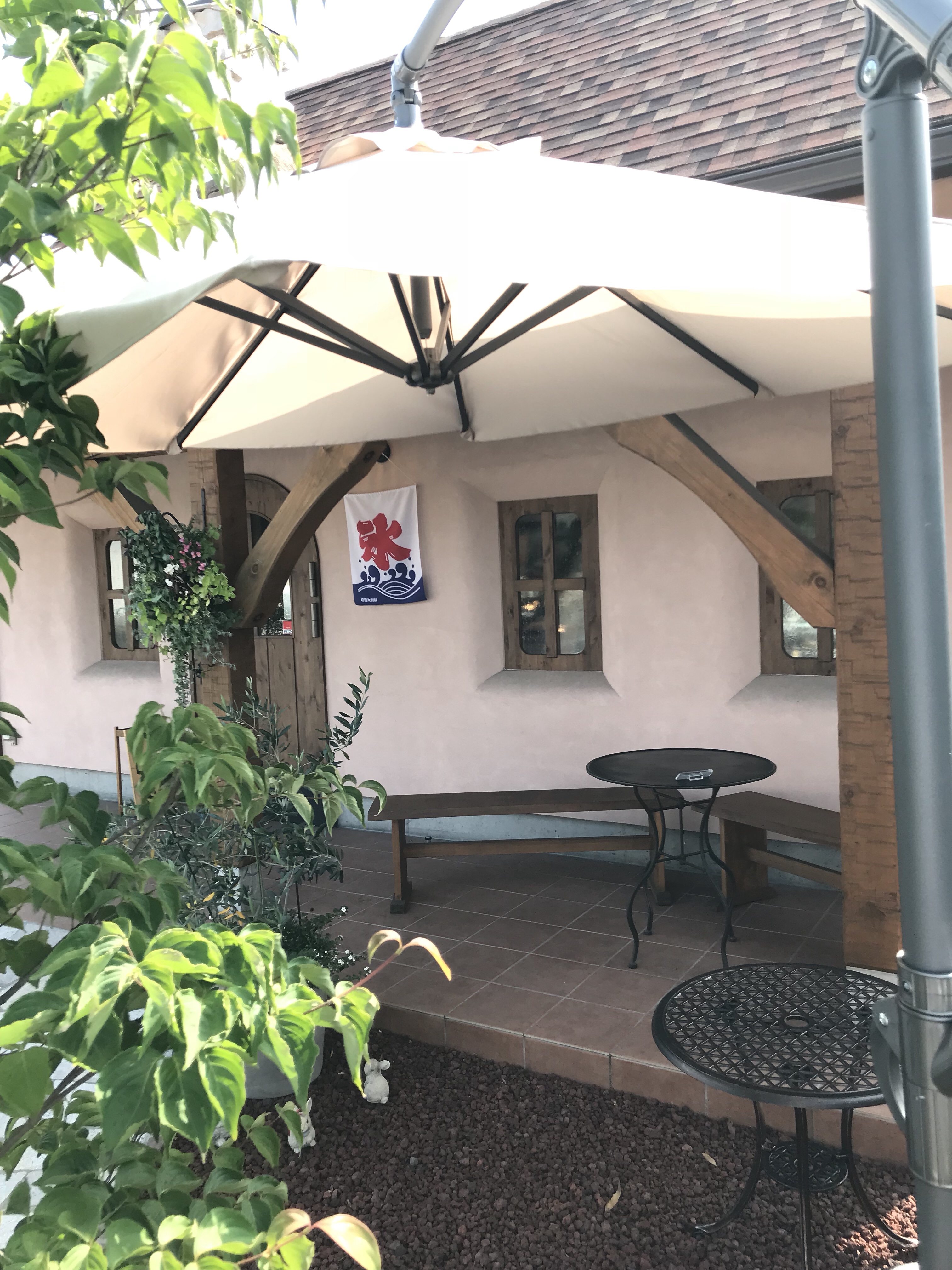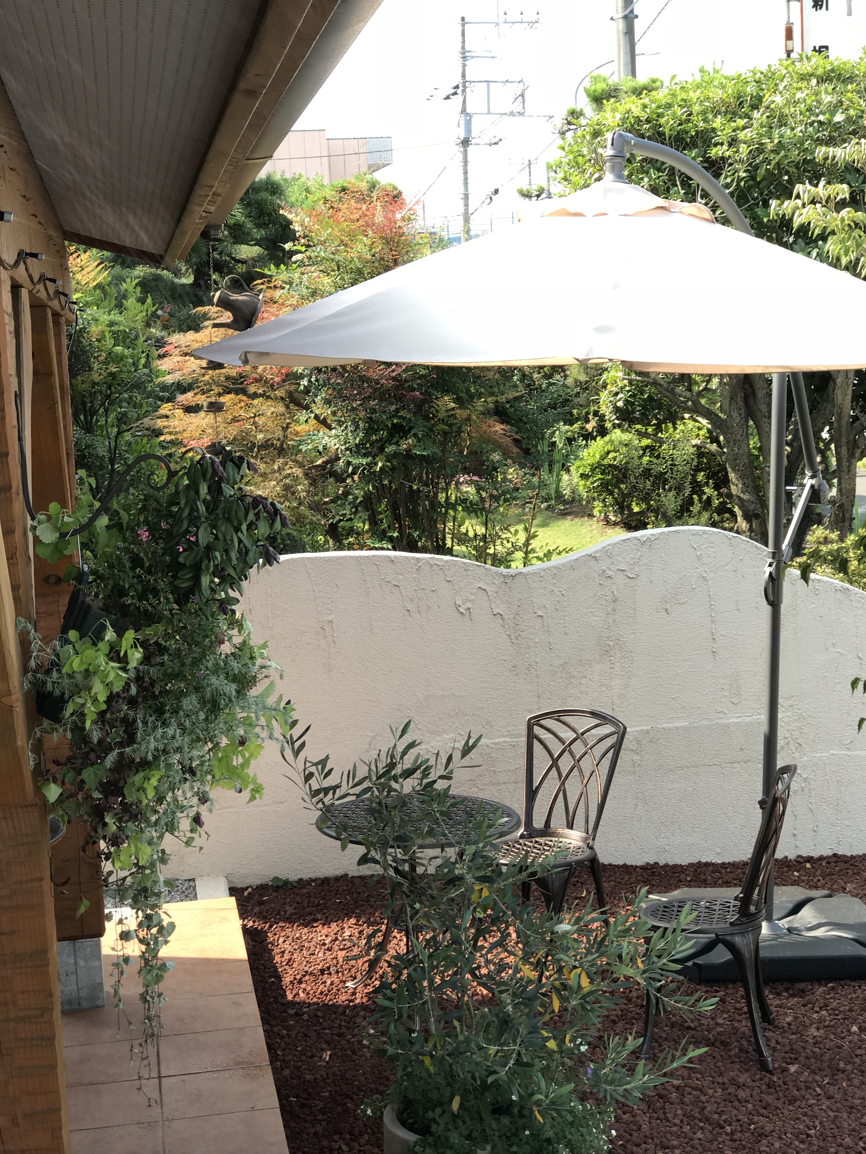 今日も暑くなりそうですね!テラス席を用意いたしました。かき氷やケーキを食べるのにご利用ください。いい感じ(^^)